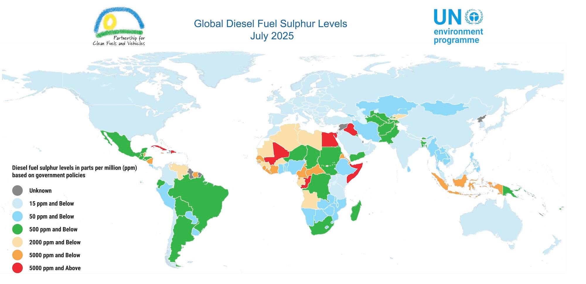 ![]() Lähde: YK:n ympäristöohjelma, https://www.unep.org/global-sulphur-levels, 2025 |